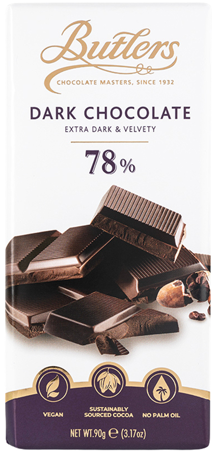 78% dark chocolate, extra dark and velvety. Bold and intense. Made for slow evenings and the perfect post dinner treat.