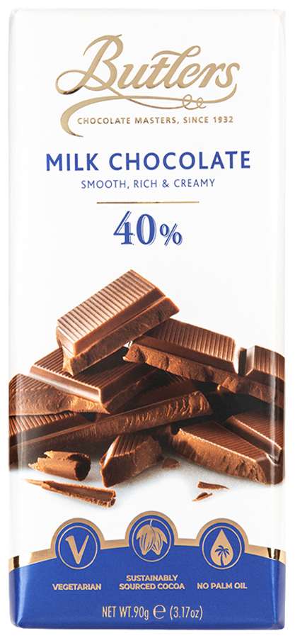 This season, indulge in the accessory of the moment – not a handbag or scarf, but something far more decadent – Butlers’ 90g Chocolate Bar. A refined blend of taste and texture, each bar is luxuriously wrapped and crafted using sustainably sourced cocoa, zero palm oil and the finest ingredients. This is not just chocolate, it’s an essential.