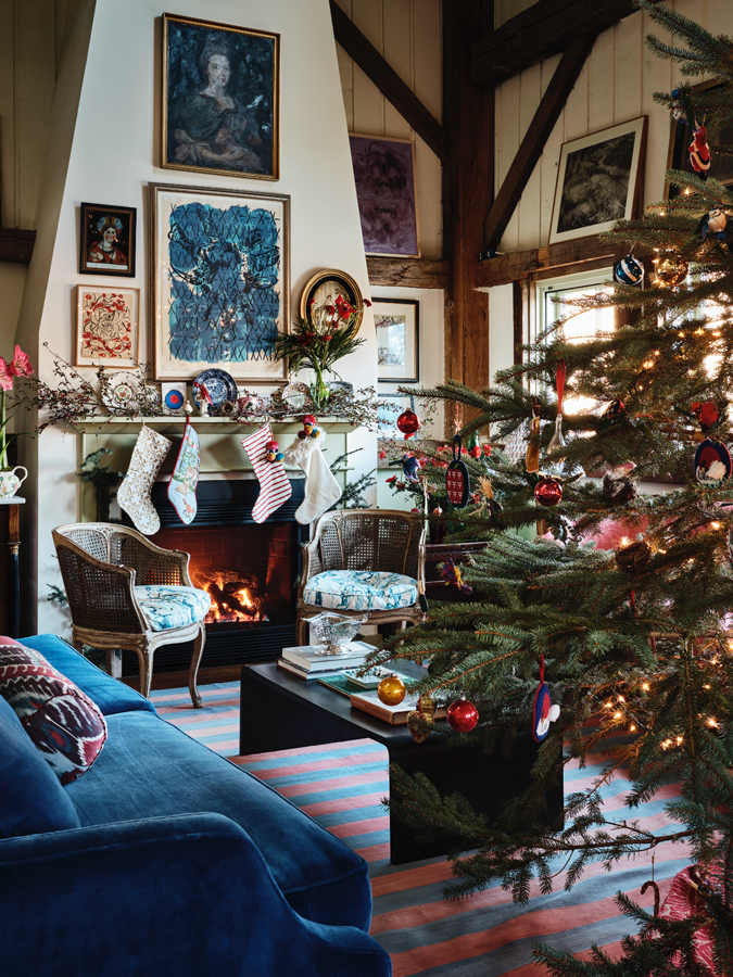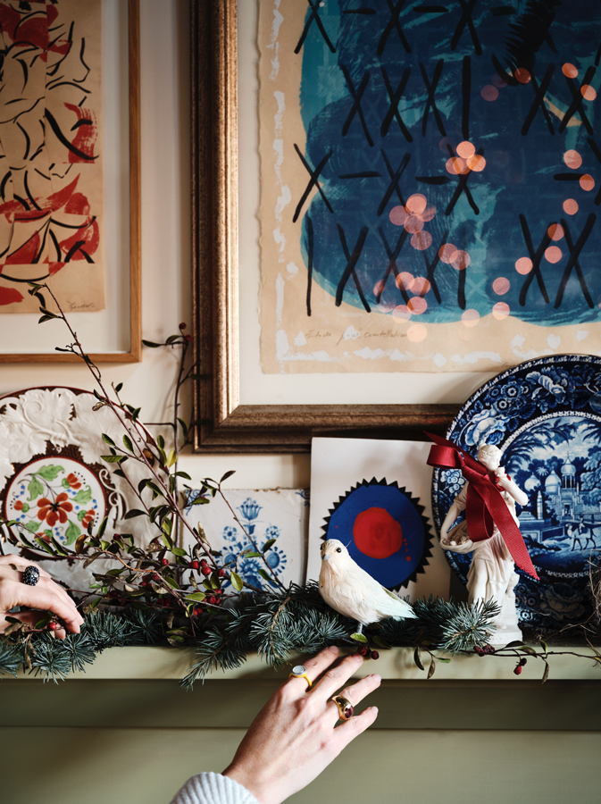 “It is in winter when I do the most tinkering, moving paintings here and there, rearranging mantels and tabletop surfaces. It is a time to play with the objects at home and the narratives they can tell when put together in new configurations. It’s an excellent time to take down all your art and rearrange it. The very act of moving around objects, artwork, and textiles allows your eyes to see things anew. I love the beautiful, rich blue of the François Rouan painting above the fireplace.”