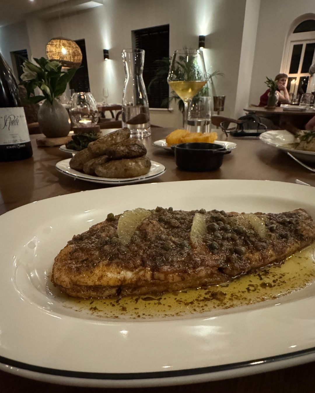 For mains, or large plates depending on your interpretation, there was plenty to tempt. Wood Fired Pork Chop with Garlic, Chorizo and Surf Clams, and Barbecue Lamb with Sheep’s Labneh, Olive, Green Sauce and Anchovy both looked particularly persuasive. But I have a weakness when I see Whole Black Sole with Capers and Brown Butter on a menu, and this time was no exception. At €65, and without sides, it did give me a brief moment of pause. Thankfully, the fish arrived perfectly cooked, delicate and nutty with the brown butter, and my financial anxiety quickly faded.