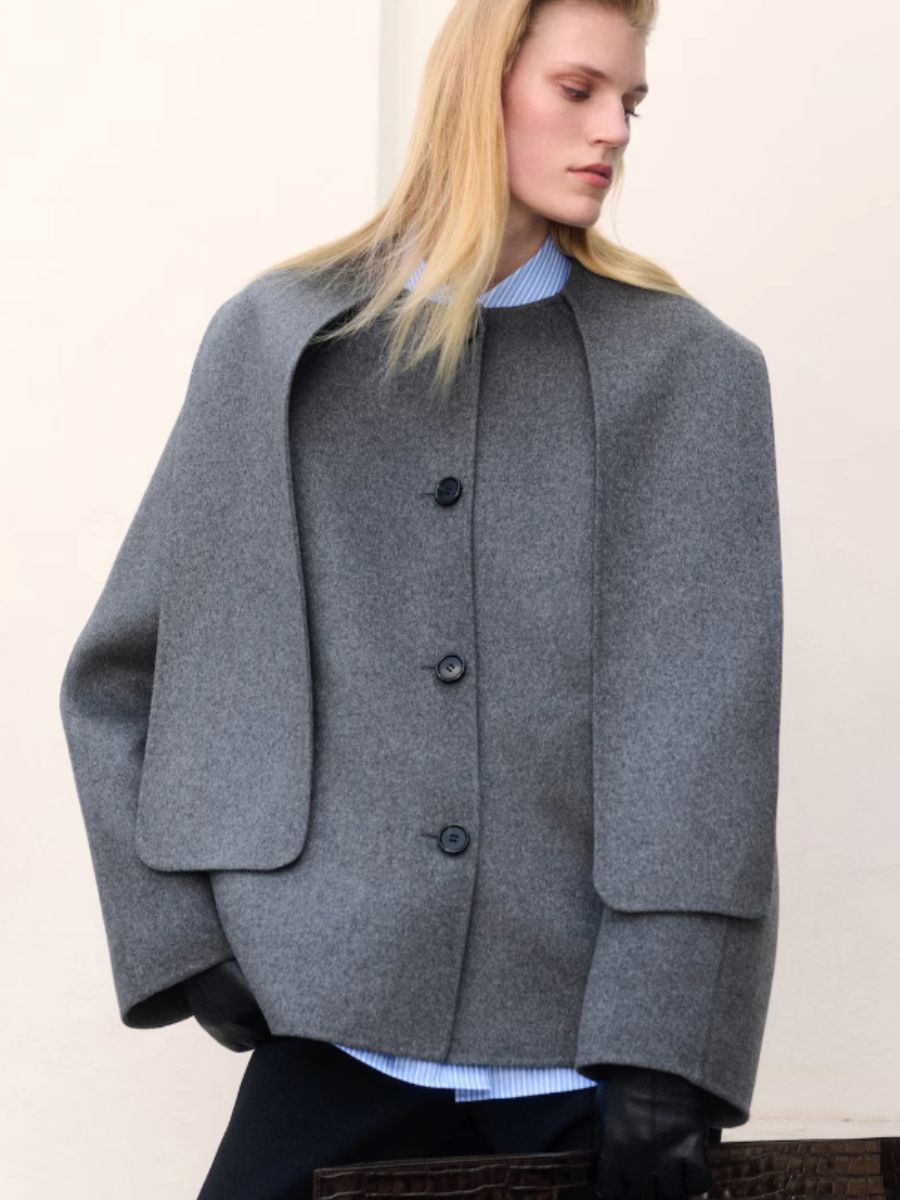 Grey double-faced wool-blend scarf jacket, €199, at COS.