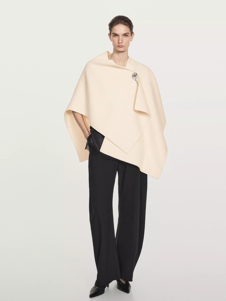 White wool-blend textured cape, €249, at Massimo Dutti.