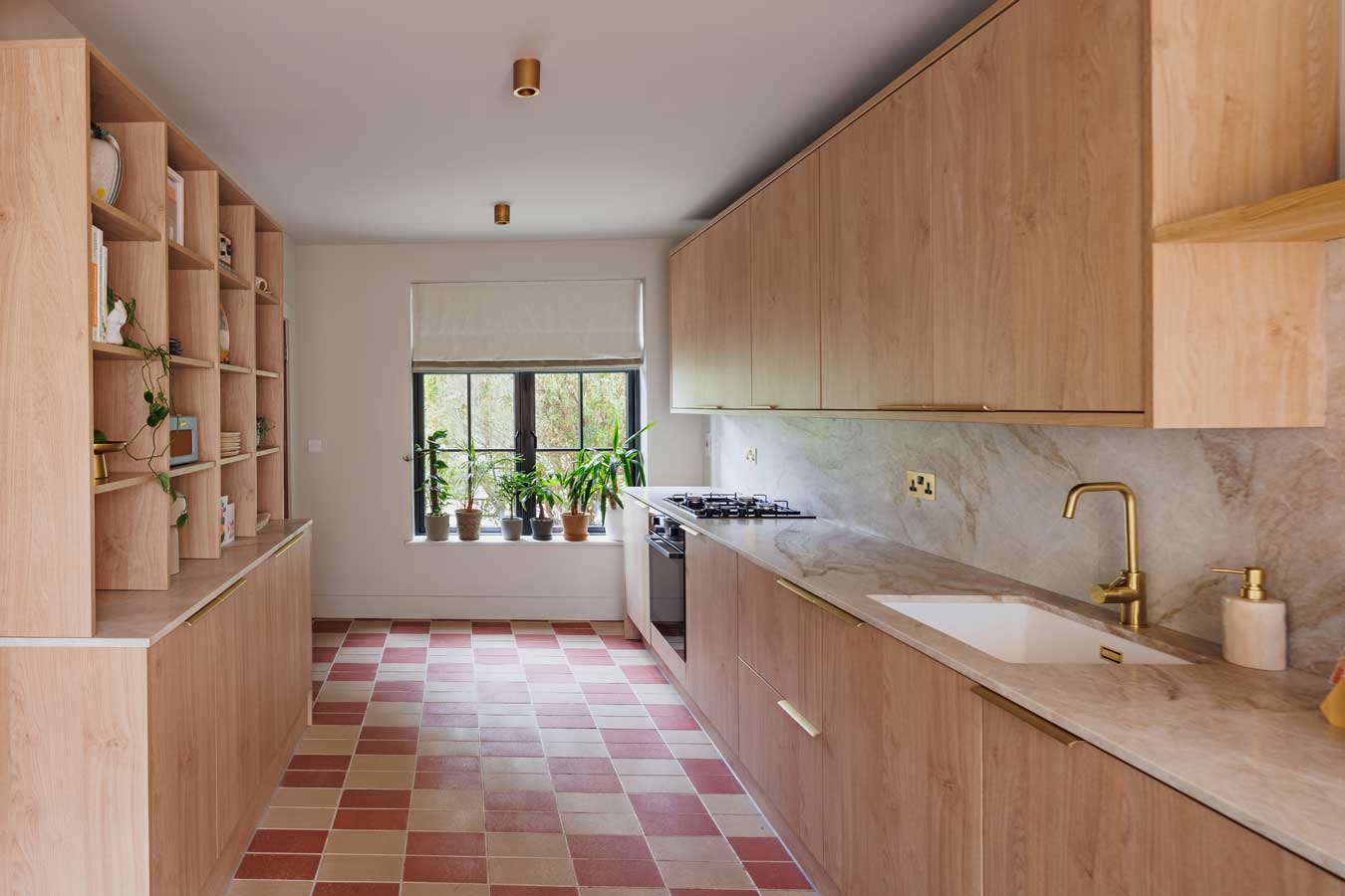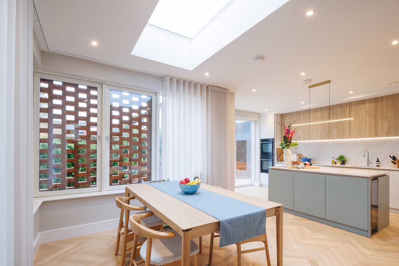 They started by replacing the existing floors as the ground was not level, switching the heating system from oil to gas and adding a much-needed skylight to the kitchen to provide more natural light downstairs.