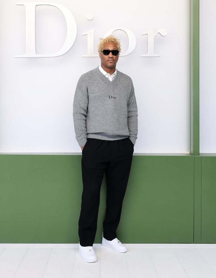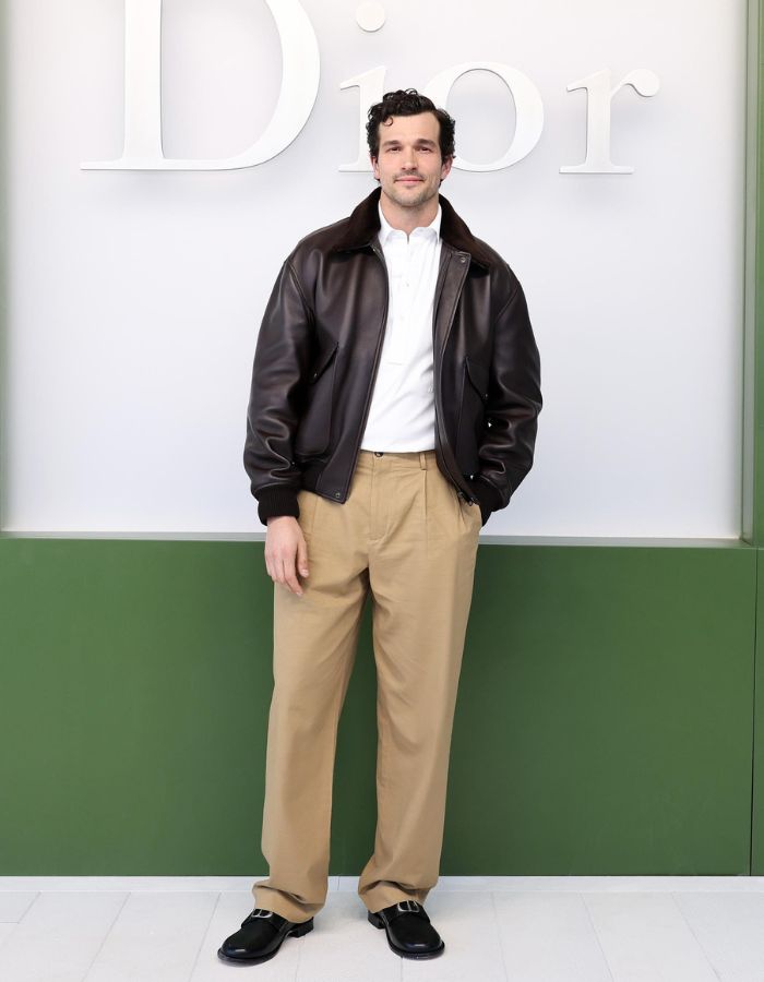 Paul Anthony Kelly wore a Dior leather jacket with shearling collar, polo shirt and wool pants, and leather Archie loafers.
