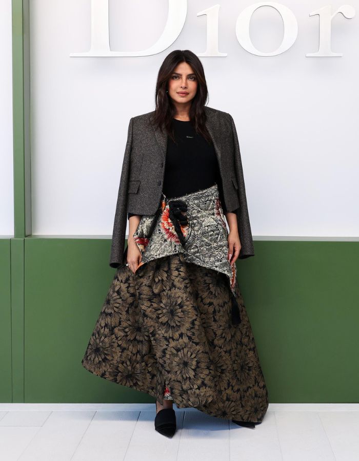 Alexa Chung wore a Dior spring-summer 2026 embroidered silk blouse and skirt.