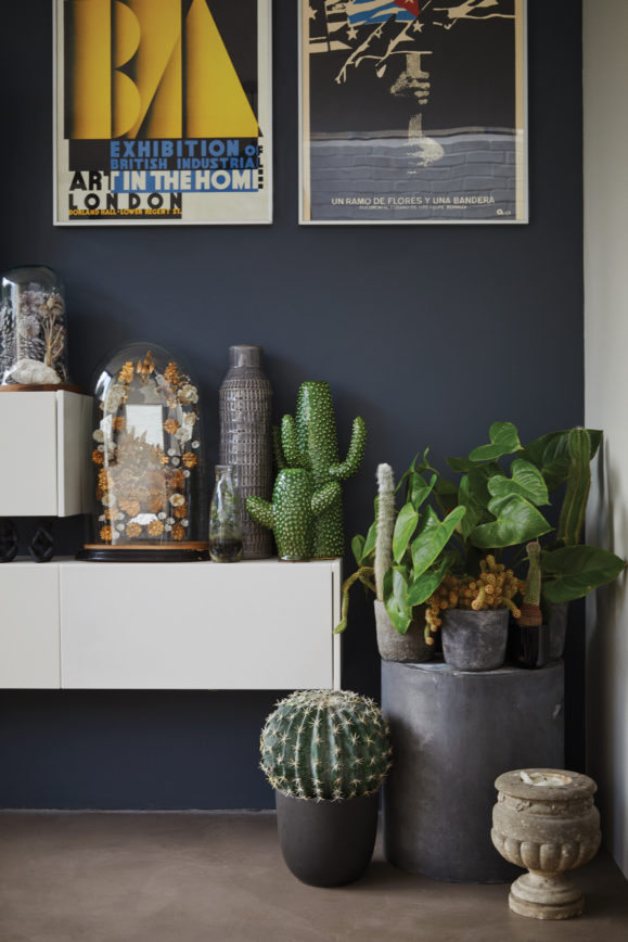 Serax artificial cacti are mixed with the real thing. The concrete stool is by Pomax.