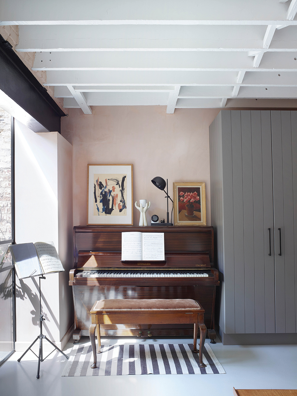 With less square footage to play with than their previous home, Beth has been clever with her ideas, creating bespoke display storage in the open-plan living space, installing sliding pocket doors and ensuring that the snug serves variously as a TV room, crash pad for guests and music space for Louis to practise the piano and violin. The wow factor undoubtedly comes in the form of generous steel-framed glass doors that draw the eye from front to back, bringing the evergreen garden into focus throughout the year. Says Beth, who’s been finessing her chic-casual style for years: “I was always interested in my surroundings,” she reflects. “I started rearranging my bedroom when I was about ten, which was when I asked for Habitat blinds for Christmas!” The key, she thinks, is to strike just the right balance. “It’s about not over or underdoing it. I don’t like things to look too new or shiny.”