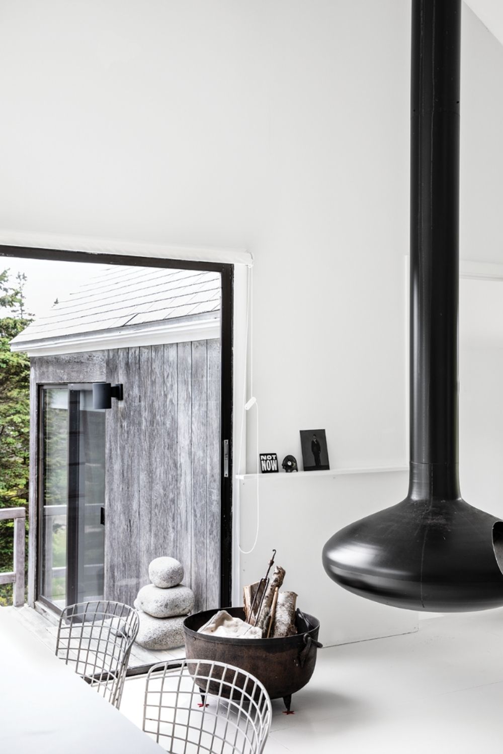 The American-made swivel fireplace, based on a French 1960s design.