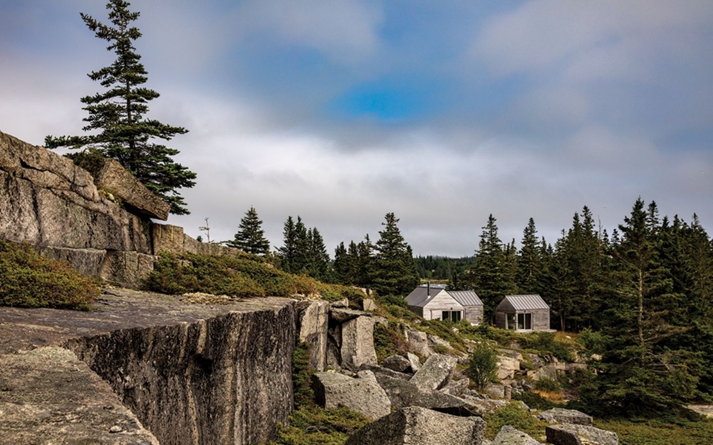Simple structures were designed to blend seamlessly into the landscape as if sprung from the granite outcroppings they are built on.