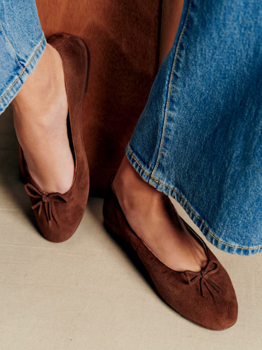 Mocha Agathe leather ballerinas, €155; www.sezane.com.