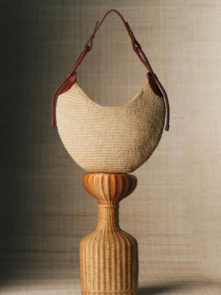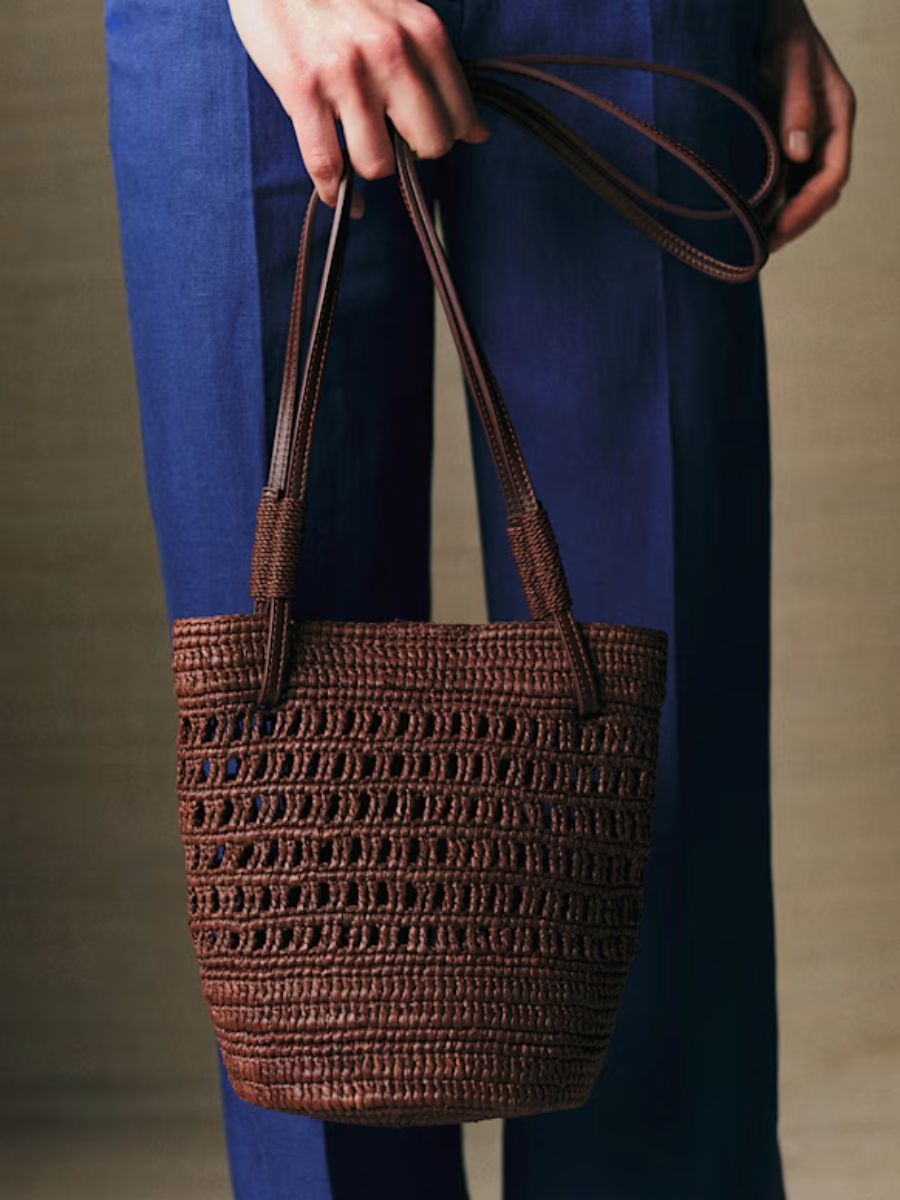 Chocolate Rosie raffia basket, €150; www.sezane.com.