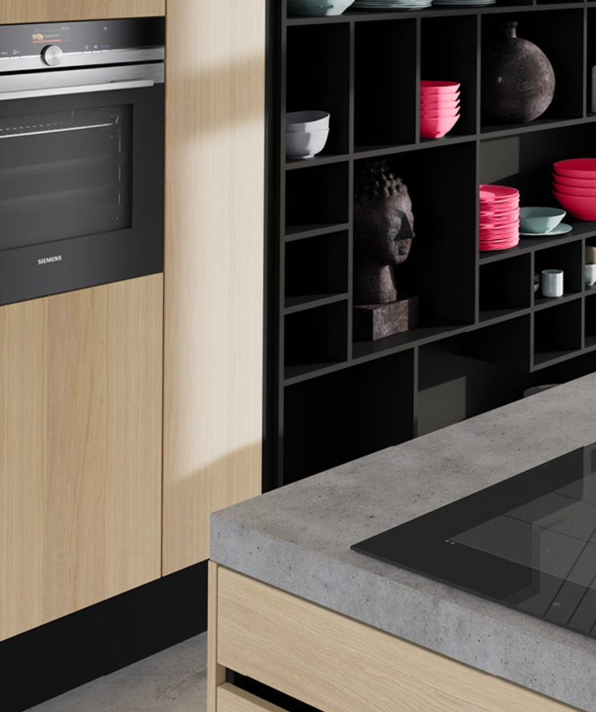 Viva Magenta 18-1750 is Pantene’s colour of the year for 2023 and has been incorporated strategically into this Siemens kitchen. It is a bold colour, so subtle additions of the shade can elevate your kitchen this summer. See the Instagram post.