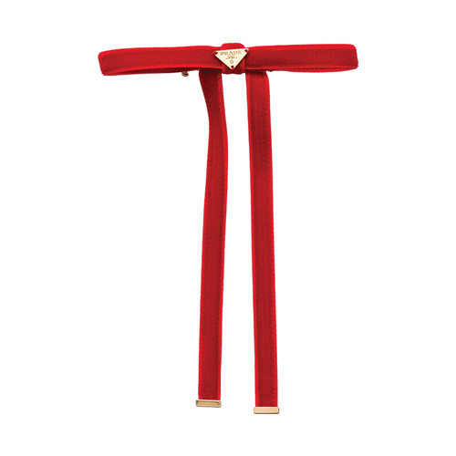 Red logo velvet bow hair clip, €390, at Brown Thomas
