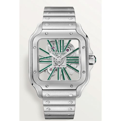 Stainless steel Cartier Santos De Cartier Skeleton watch, at Cartier, Chatham Court, Chatham Street, Dublin 2