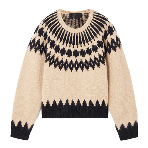 Camel Alena Fair Isle alpaca blend sweater, Nili Lotan, €797, at Harvey Nichols, Dundrum Town Centre, Dublin 16