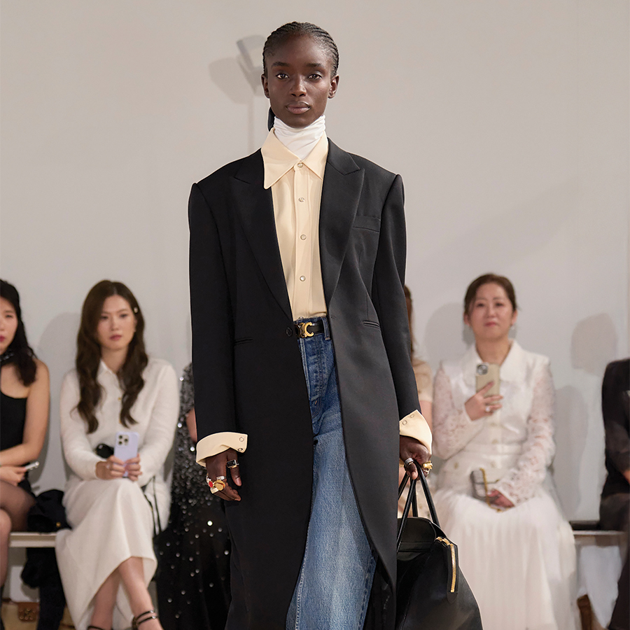 A FRESH PERSPECTIVE: Michael Rider’s first show as creative director for Celine felt like a fashion reset, making way for a confident and polished preppy-chic look. The show was packed with wearable trends, the clothes leaned into structure with ease: sharp-shouldered coats, shirting with exaggerated collars (layered over white form-fitting polo-necks), clean-cut pressedfront jeans and tailored trousers. But it was the accessory styling that did the real talking. Jewellery was boldly piled on without being loud: think layered charm necklaces, XL chain bracelets, stacked rings. There were patterned silk scarves and plenty of belts and brooches – yet nothing felt overdone. Rider’s message was clear: modern dressing is about attitude and knowing exactly how much is just enough …