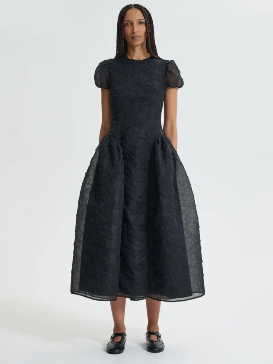 Black Cleopatra demi-puff sleeve dress, Ceclie Bahnsen, €1,405, at Samui.