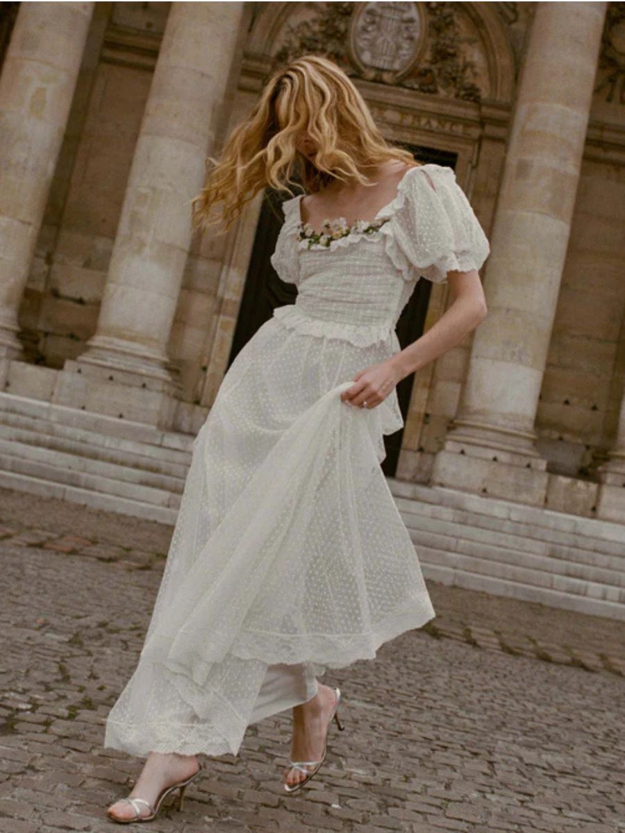Luckily, SS26 is ushering in a host of dresses that are sure to bring a frisson of excitement to your get-dressed rotation: perfectly-timed if, like us, you’ve been in something of a get-dressed rut. Fresh off the block, there are a host of pastel tones which immediately conjure a sense of frothiness. Spotted so far are icy blues at Marks & Spencer, palest pinks at Simone Rocha and salt whites at Dôen. Equally, the shapes and fabrics we’re seeing are romantic. Think: gauzy materials, demi-puff sleeves and bucolic scoop-necks.
