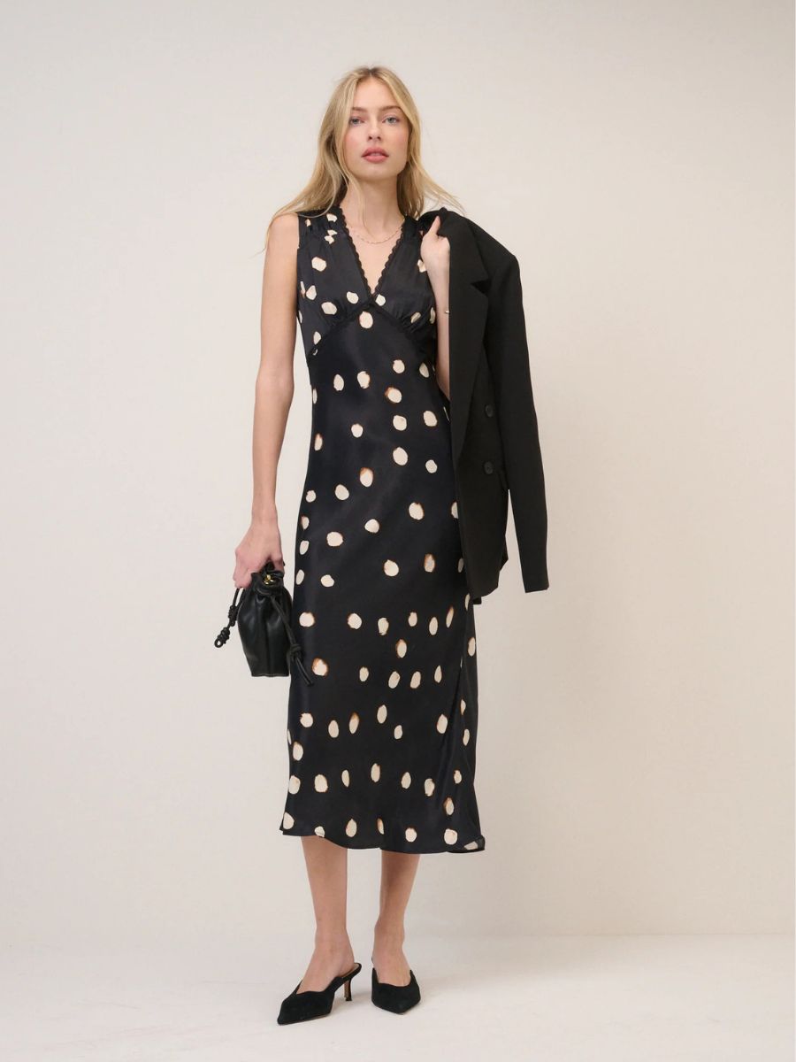 Black polka dot maxi dress, €136; www.nobodyschild.com.