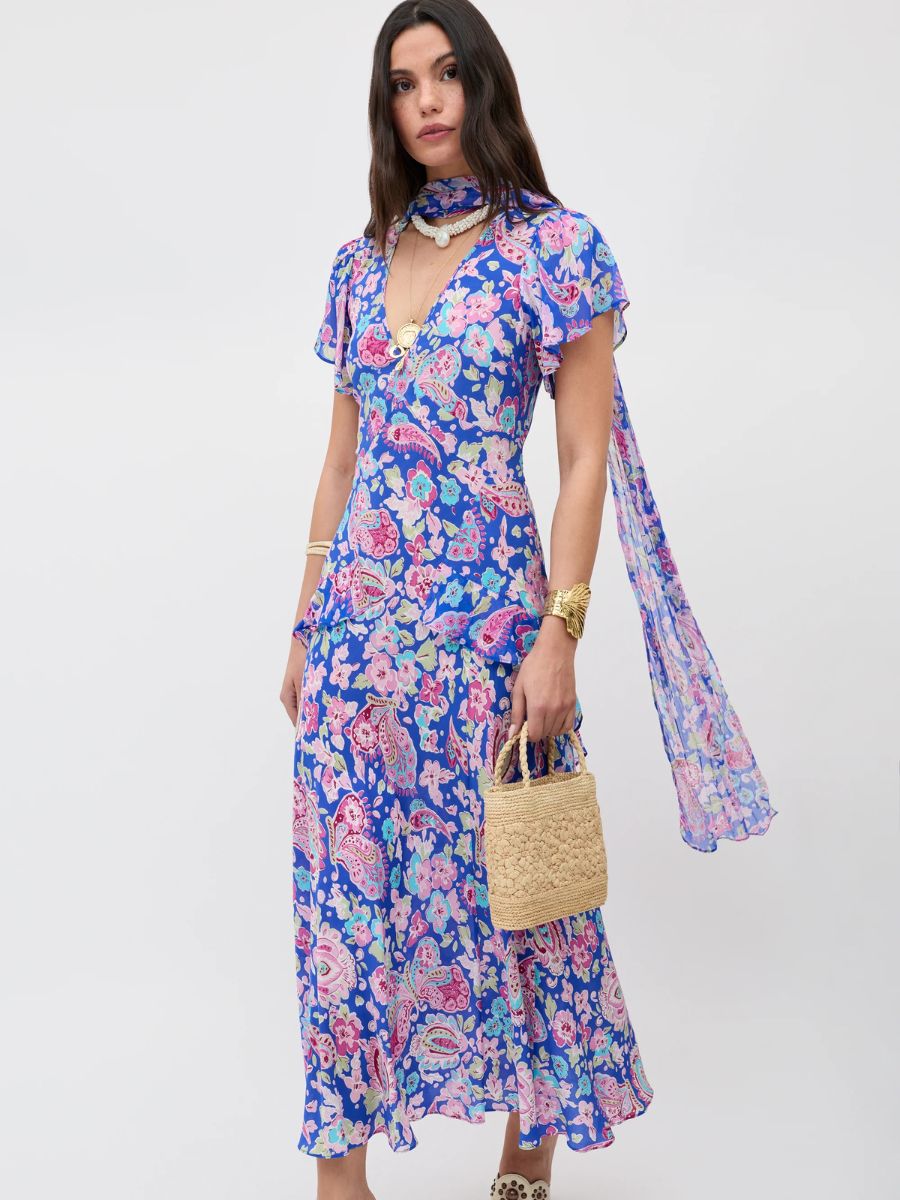 Multi-colour Cara paisley print dress, €435, at Rixo.