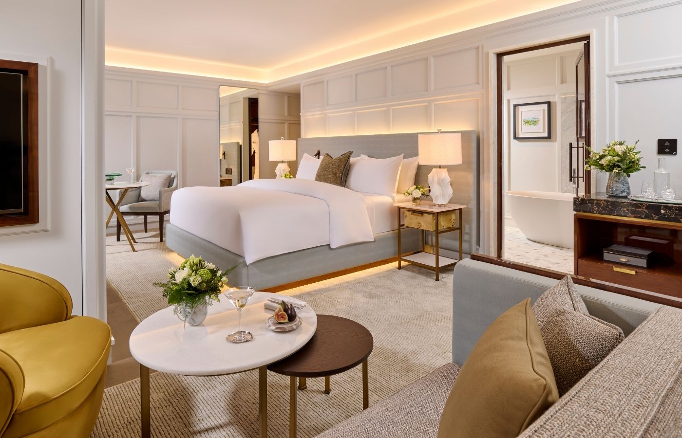 This sense of space, light and warmth is notable across the hotel’s 114 rooms, all designed as posh private residences. In addition, there are 47 junior suites and 17 penthouses, perfect for extended stays, while several rooms can be reconfigured to create multi-generational family experiences. Restraint rather than excess is the vibe here, reflected in the muted colour palette, beautiful linens, in-room amenities and intuitive mood controls, which all adds to the sense of ease and comfort. Bespoke artworks by Irish artist Kathryn Callaghan is a unifying décor detail, as are floor-to-ceiling windows framing the views, and curved forms creating spaces that look and feel harmonious.