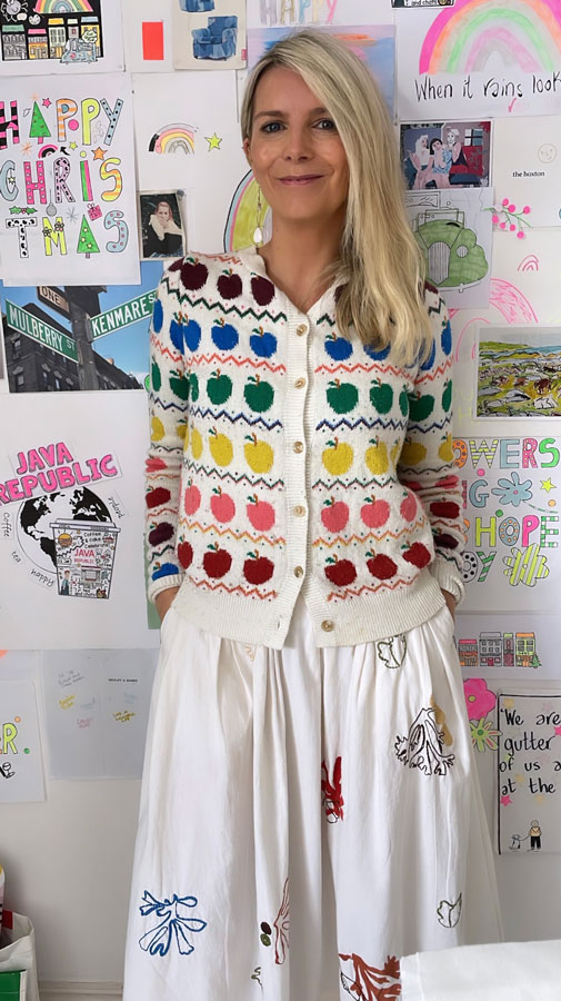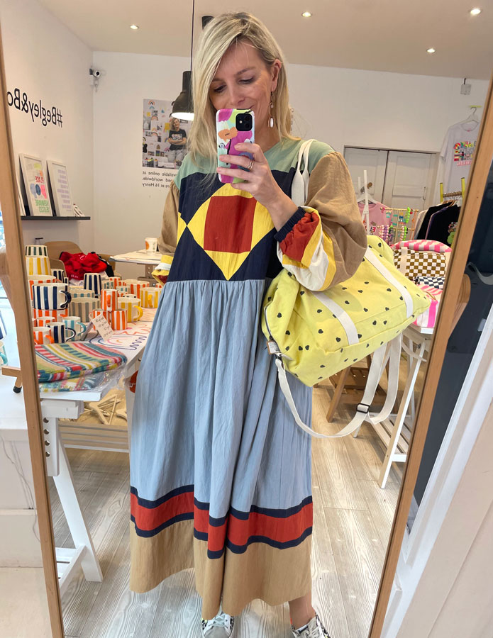 I have always loved jewellery, especially earrings. I have so many pairs from a Kerry-based designer named Lisa Dora that my mum first gave me as gifts as a teenager and I still love her work. I have so many pairs. I think that accessories can really make or break an outfit. I always find pieces in Momuse, Blaithin Ennis, Chupi and Inner Island. For colour, I stock the beautiful Creations Dana and Love Beth in my store. Most of my rings made locally by jewellery designer Paul Kelly in Kenmare. His jewellery is beautiful, particularly his “Jelly Tot” rings. I wear one of his amethyst rings which I rarely, if ever, take off. As for dream jewellery purchases – bracelets by Kyoto Tango are on my wishlist. For bags, Donna Wilson is a Scottish artist and designer who has collaborated with the Whitney Museum in New York and the V&A in London, and her new collection of totes is stunning.