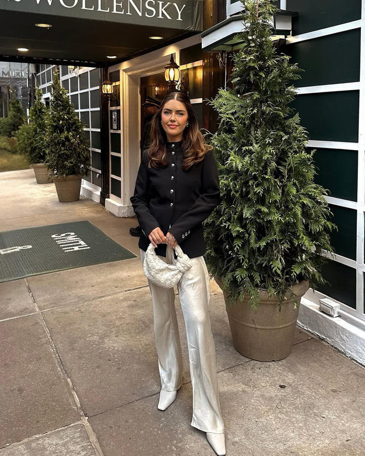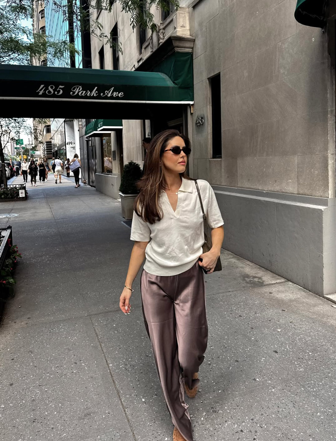 My satin pants from Aritzia. I also have pairs from Reformation and Dissh. They’re the hardest-working thing I own – I can throw them on with a cardigan and loafers for day or with a blazer and heels for night. They make me look put together but still so comfortable.