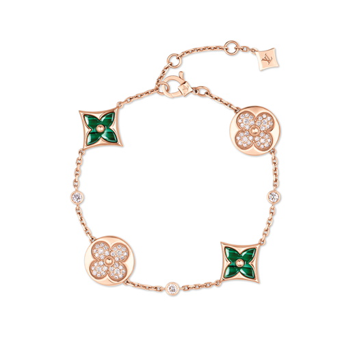 18ct pink gold Colour Blossom 4 motifs bracelet with malachite, diamonds, €11,200