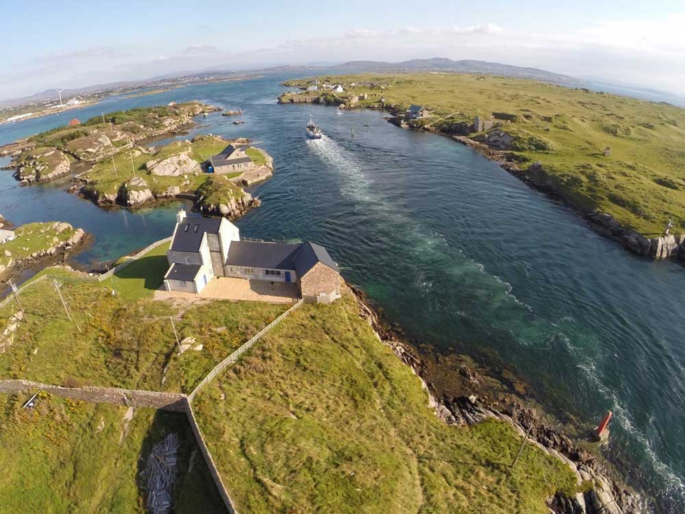 One of Ireland’s best kept secrets, Inishcoo overlooks the Rutland Sound, a busy ferry channel, just one mile offshore from Burtonport. Inishcoo House, formerly an 18th-century coast guard station, has been restored by its owner Celia Ferguson as an eco-house, which sleeps up to twelve adults and eight children. There are four natural beaches perfect for rock climbing, gathering seashells and investigating the small shipwreck on Shipwreck beach. From €800 – €1,000 per night, the self catering rental includes a boat and a skipper for transfers or water activities each day. Additional services such as a chef and housekeeper can be booked upon request; www.adamsandbutler.com.