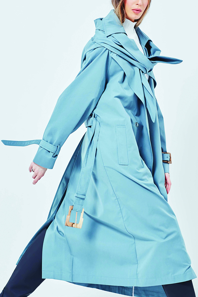 Blue Thetis organic cotton trench coat, €487.90; WWW.AQUAROCK.COM.