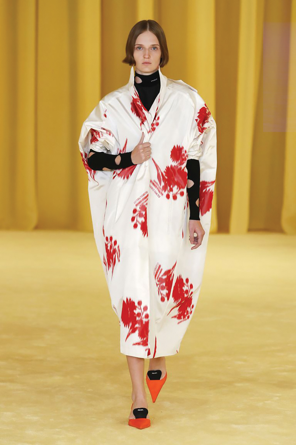 Designers Dolce & Gabbana, Etro and Sea New York have fully embraced the cheerful homespun, heirloom-style quilted and artfully lined one-of-a-kind coats inspired by wanderlust and a love of global travel. Think glamorous yet eclectic prints with a bohemian aesthetic. Take inspiration from the Dolce & Gabanna runway and choose an ethnic, “I picked this up on my travels”–style print. Add an artsy tote and a co-ordinating headband. Check out Free People’s effortless print duster coats (namely the Cyrene coat); www.freepeople.com. A kimono coat, cut from silk or twill, will move beautifully as you walk. It’s a truly versatile piece – you can also style as a dress. Christopher Kane’s graphic approach to outerwear echoed Kane’s own lockdown paintings. At Marni, designers patched together 25 slogan-emblazoned coats from past-season outerwear collections and painted them with phrases like “Love is everywhere, no stones can withhold me” (a reference to coronavirus) and others with the word “Love”graffitied across the collars.