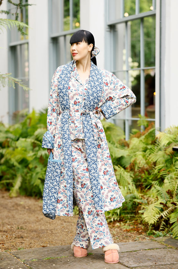 Blue floral cotton dressing gown, €69.95; matching pyjamas, €79.95; both Avoca Collection, at Avoca.