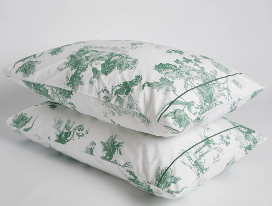Green toile de jouy cotton duvet set, from €79.99, at Foxford.