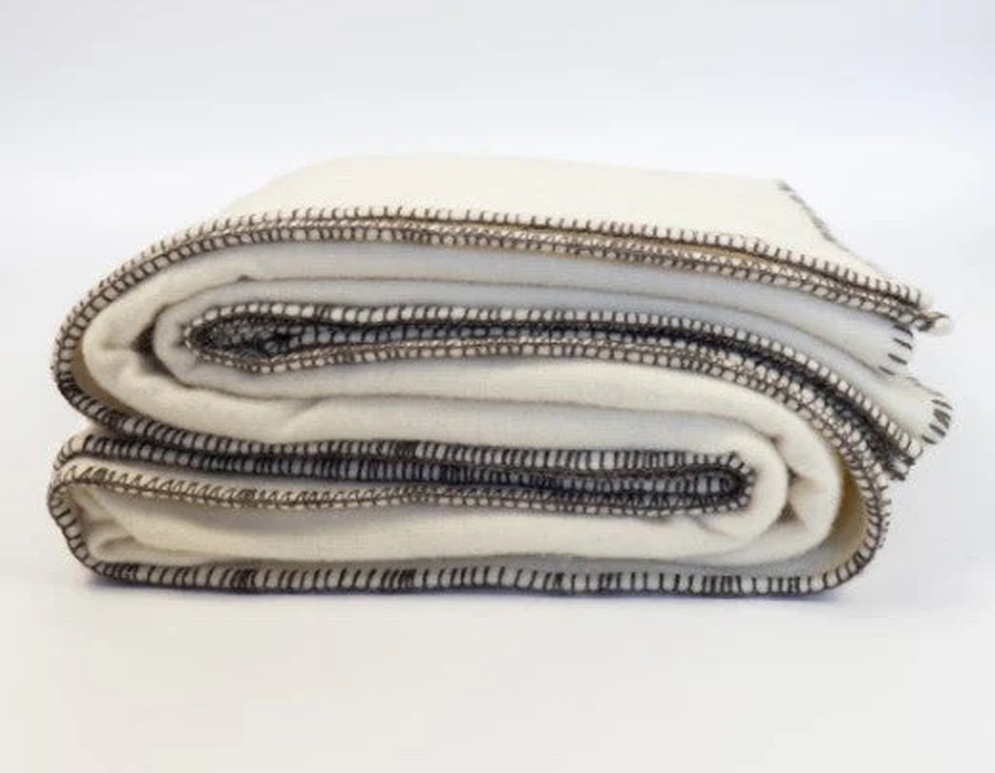 Natural white wool blanket with stitch trim, from €95; Kerry Woollen Mills.