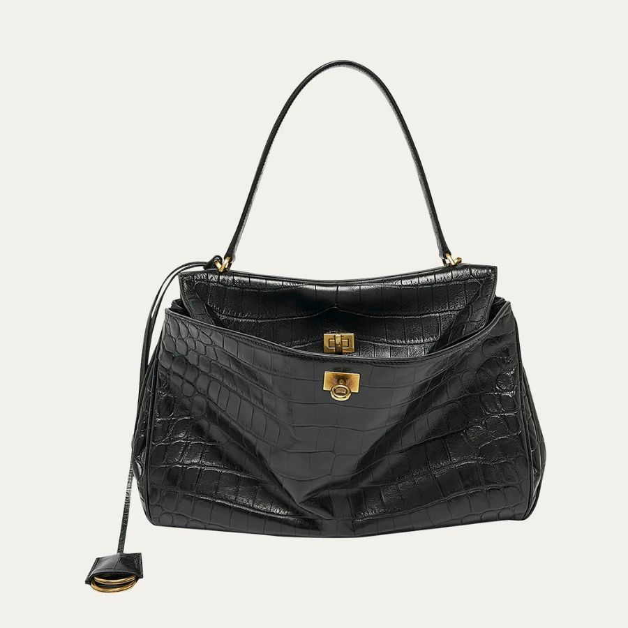 The height of luxury: Balenciaga’s Rodeo bag in embossed calfskin, €3,150; www.balenciaga.com.