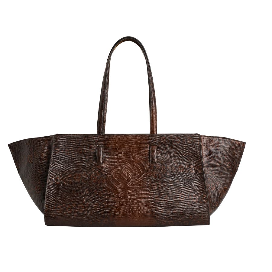 On the high street, there’s buzz around the Monument bag by COS, a sleek oversized shoulder bag that comes in brown suede and debossed croc-effect Italian leather. The shape? It’s an exaggerated east-west silhouette, which essentially means it’s long and skinny.