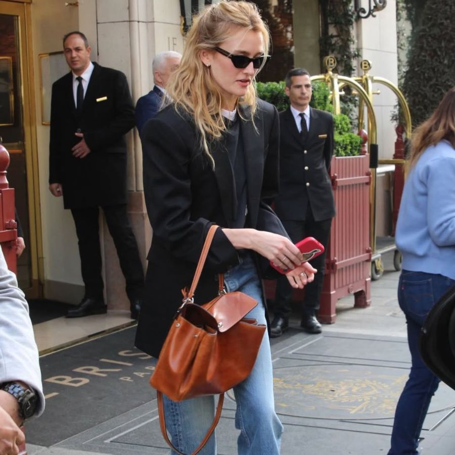 Perhaps the most ‘one per cent’ of all luxury styles is Balenciaga’s Rodeo bag, not because of its size (it’s so roomy, it could almost double as a laptop bag), rather the slouchy shape and open compartment give off a distinctly louche vibe that reminds of Jane Birkin’s beloved Birkin bag by Hermès. The reference might be nostalgic, but the look is wholly of-the-moment. See: Sarah Pidgeon, star of Love Story: John F Kennedy Jr and Carolyn Bessette who was spotted recently in Paris wearing a chestnut-coloured version on her elbow.