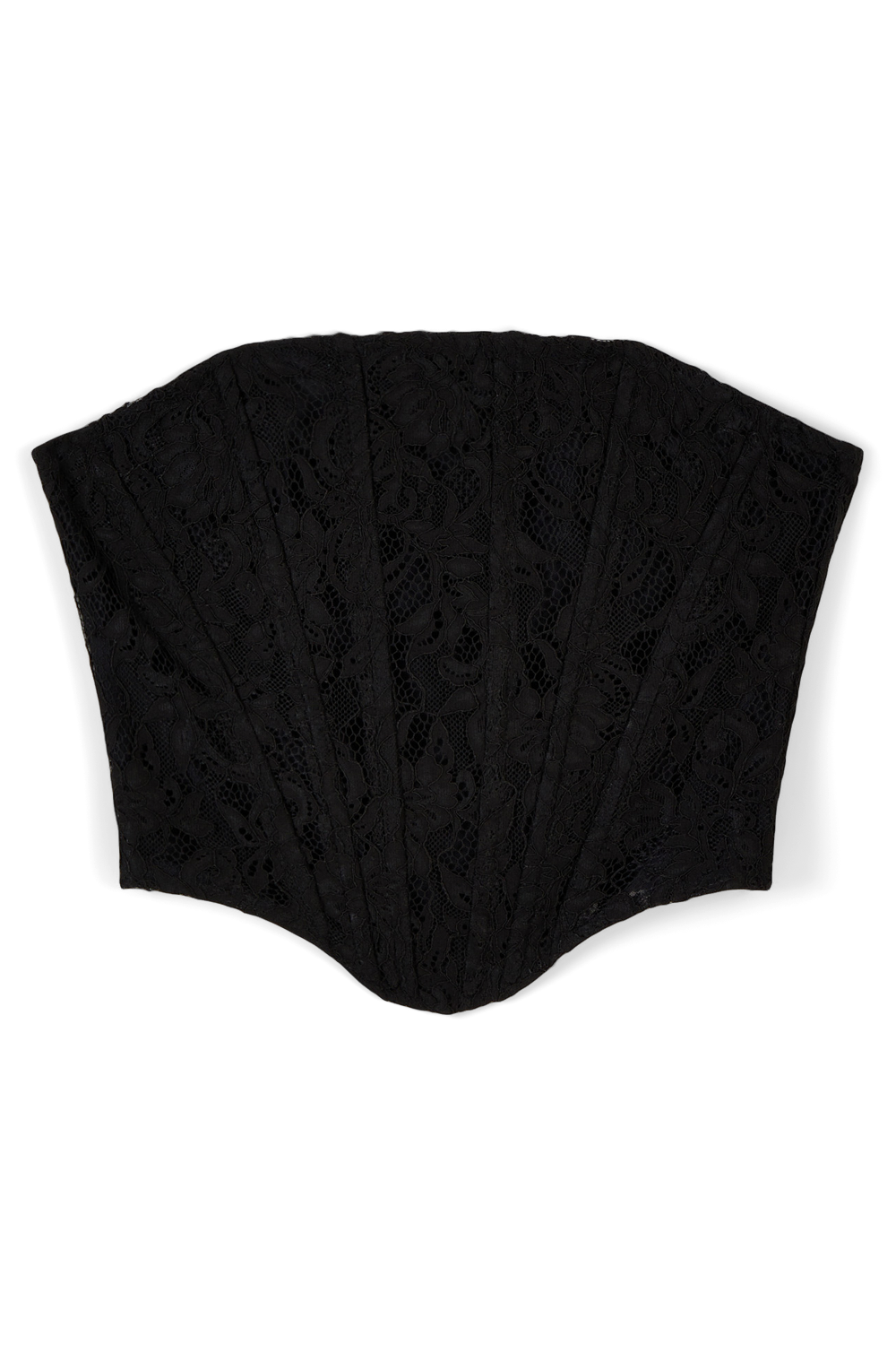 Black cotton-mix lace panel strapless corset, €99; www.karenmillen.com.