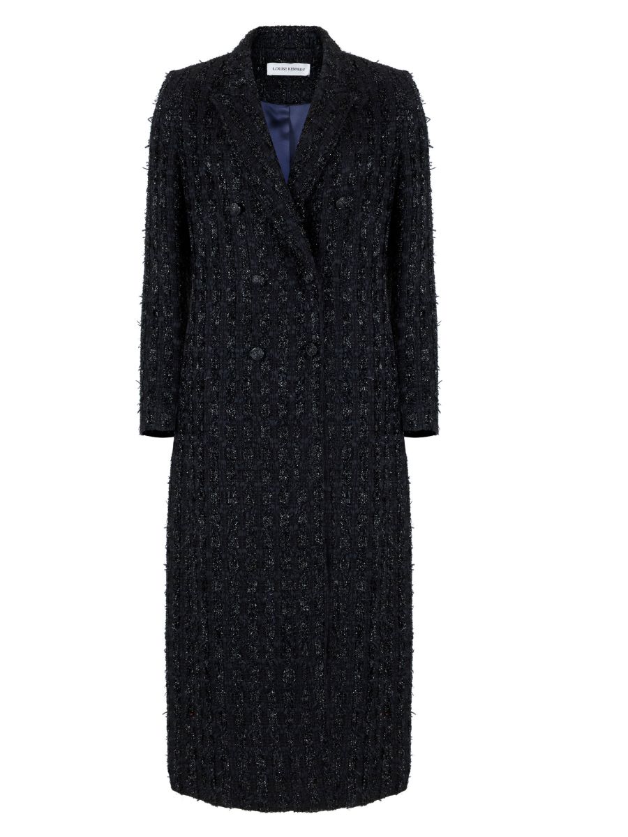 Black Kristina lurex tweed coat, €1,795, at Louise Kennedy.