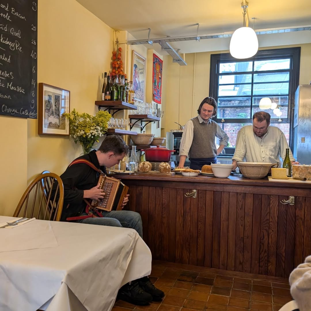 The blackboard menu offers a set four-course lunch for £50. Once upon a time, there was choice; now there is none. Optional extras (half a dozen oysters or a cheese plate) are £20 apiece. There’s a certain liberation in surrendering all decision-making, though I did feel a pang for the rumoured pies of old. The mushroom vol-au-vent was buttery, deeply savoury and went a long way towards consolation. Corcoran, clean-shaven and softly spoken, moved between stove and table with practised ease, topping up glasses, chatting to guests, keeping an eye on pots behind him. There is a rare lack of theatre, just quiet confidence and calm hospitableness.