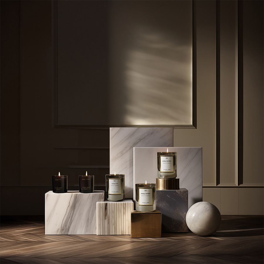 Noble Myrrh is warmer and more contemplative, with resin and subtle spice creating an inviting, ceremonial atmosphere perfect for quiet evenings and festive gatherings. Together, they form a balanced, layered fragrance experience, ideal for creating a luxurious, seasonal ambience. Limited edition, €45 each.