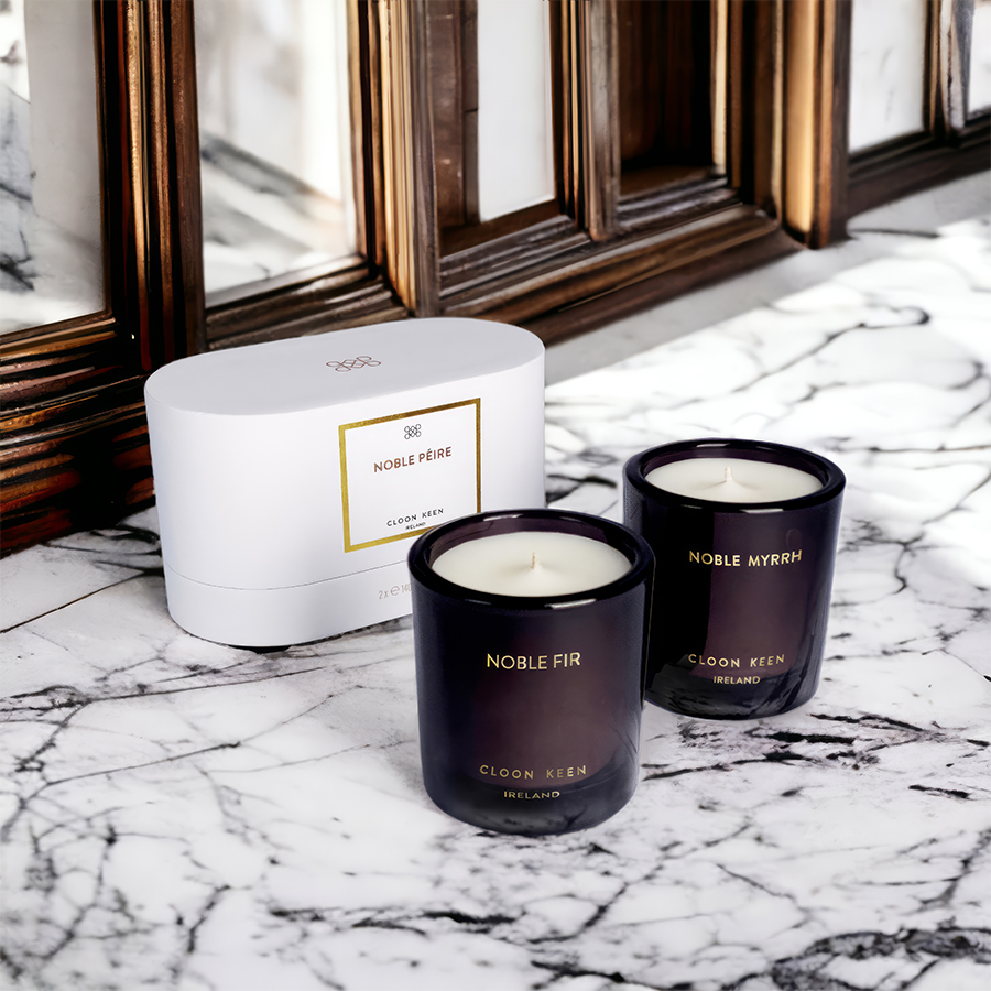 Completing the Trinity is Noble Pèire (€65), a pair of smaller candles packaged as an elegant gift set. Featuring miniature versions of Noble Fir and Noble Myrrh, Noble Pèire offers the same luxurious scents in a compact format – perfect for gifting, sharing or enjoying in multiple spaces. It embodies Cloon Keen’s philosophy of thoughtful, high-quality craft, making it a refined choice for festive giving.