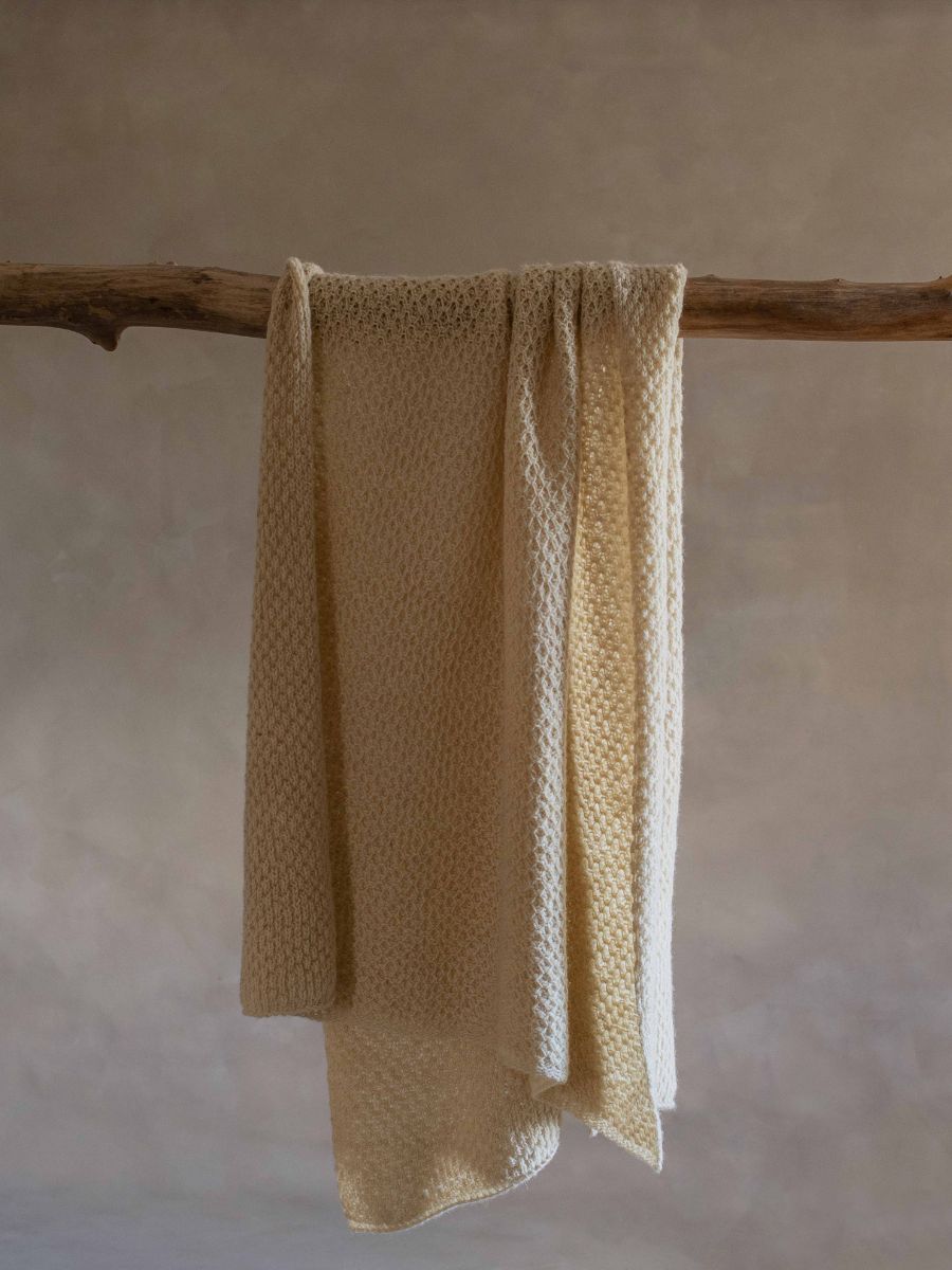 Off-white Irish wool honeycomb stitch blanket, €283; www.eriu.eu.