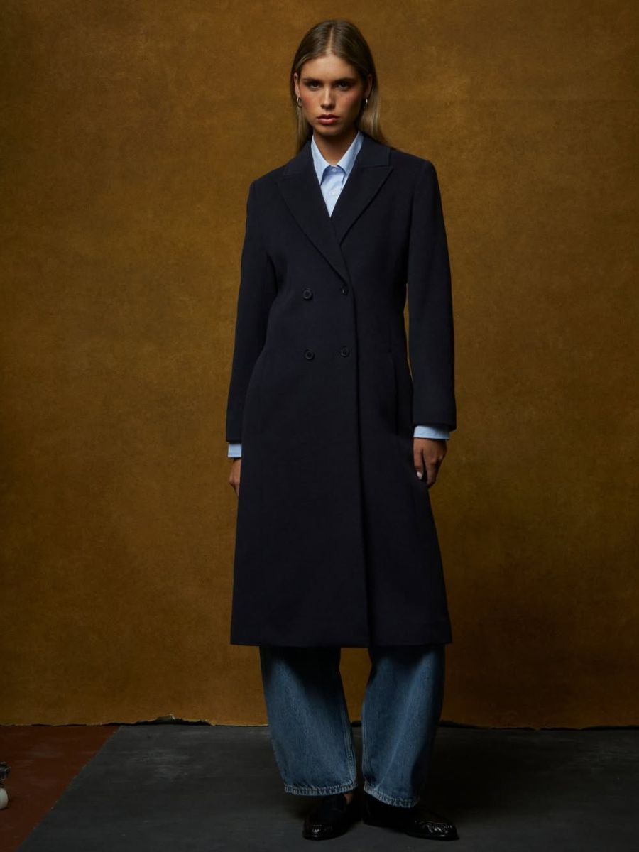 Navy Beryl wool-blend double-breasted coat, €599, at Helen McAlinden.