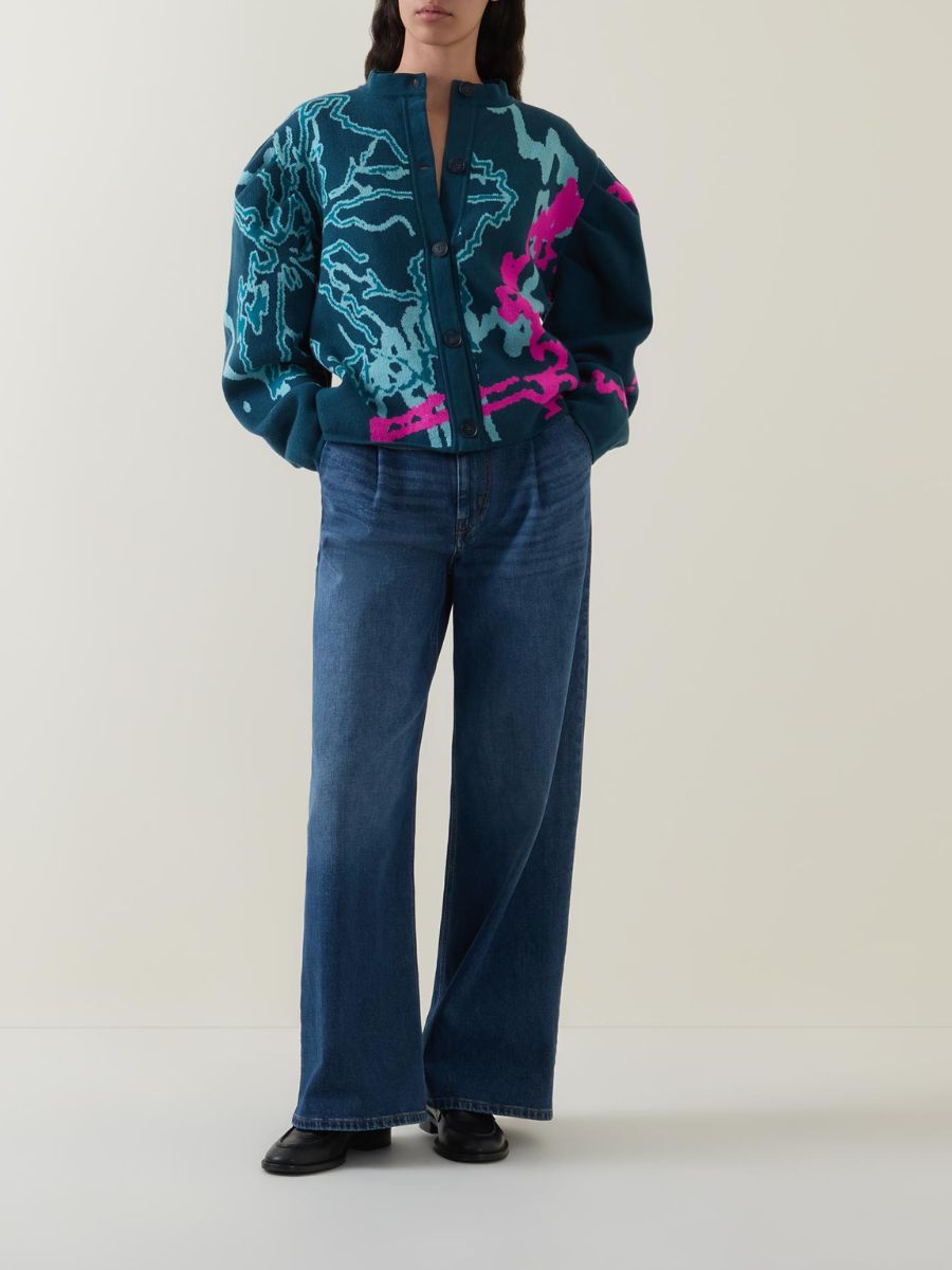 Blue merino wool barrel-sleeve cardigan, Urban Aaran, €395, at Brown Thomas.