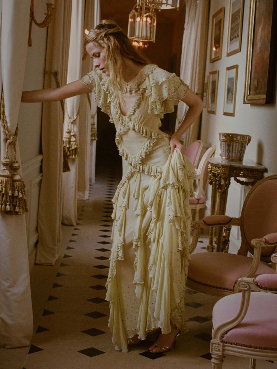 To celebrate its tenth year, fashion label Dôen has created a capsule collection of premium dresses that take black-tie dressing to the next level. We love this yellow ruffled style for a spring wedding. Yellow Antoinette silk crinkle-chiffon dress, €3,540; www.shopdoen.com.