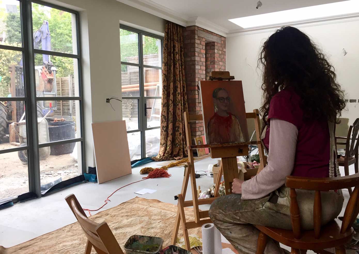 I had my own interior design business for 14 years and now work as an artist full time. I have a studio in Belfast city centre but most recently, as work on our kitchen extension has been on hold, I have been using it as a creative space to complete paintings for my solo exhibition which has just opened in ArtsiAnn Gallery, Belfast. I’ll be happy to return to my studio when our kitchen is finally fitted next month as we near the end of our two-year Edwardian refurbishment.