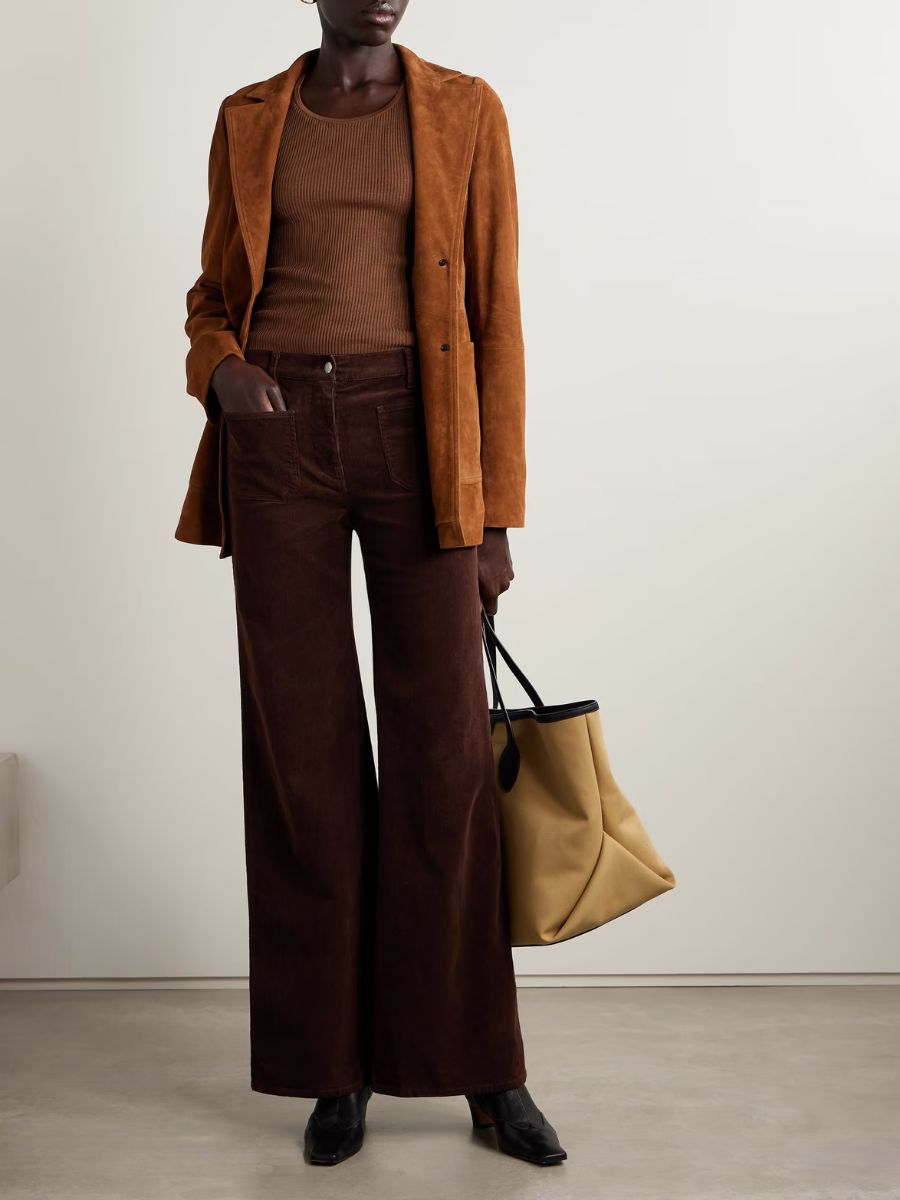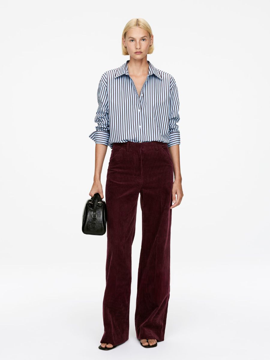 Embrace texture by pairing cords with suede, leather and ribbed fabrics. Burgundy Florence corduroy trousers, Nili Lotan, €560; www.net-a-porter.com.