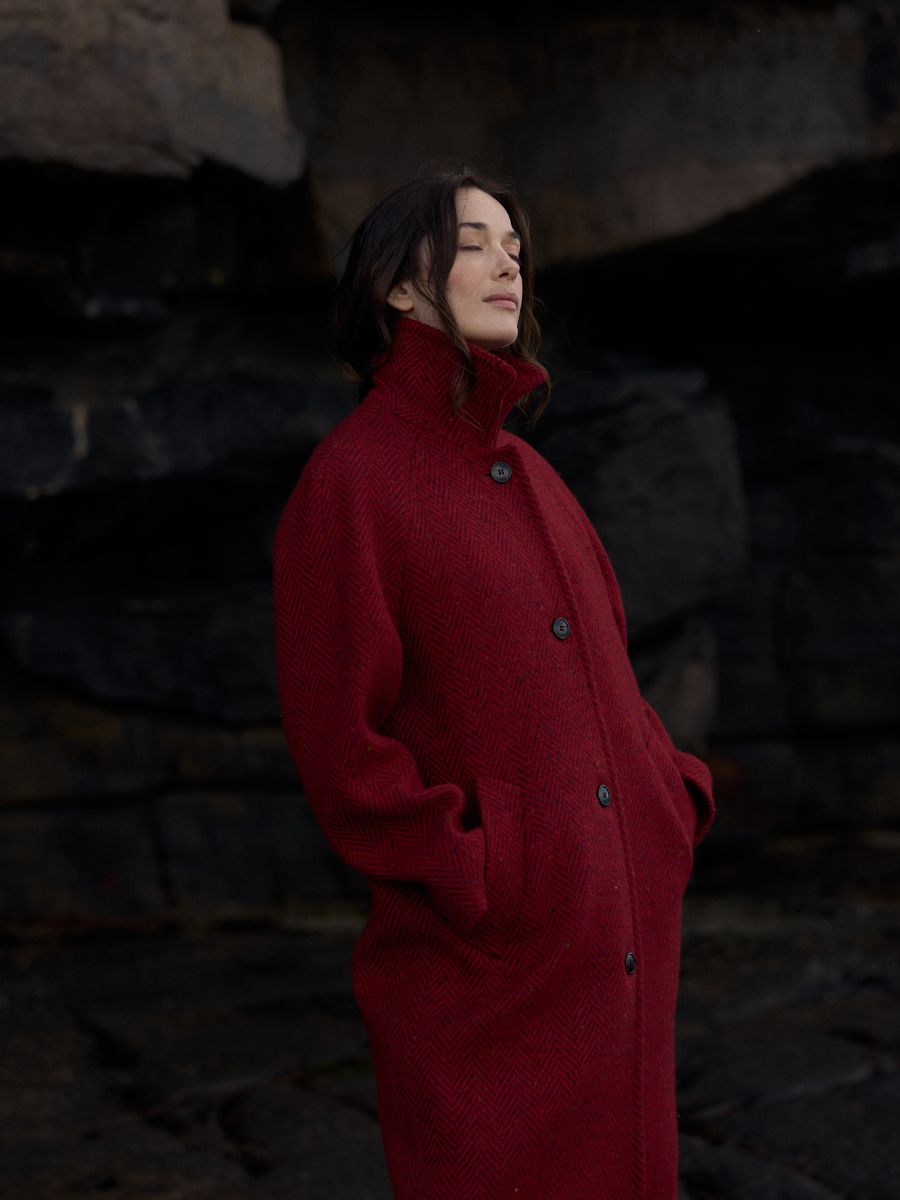 Red Arlene herringbone coat, €675, at Magee 1866.