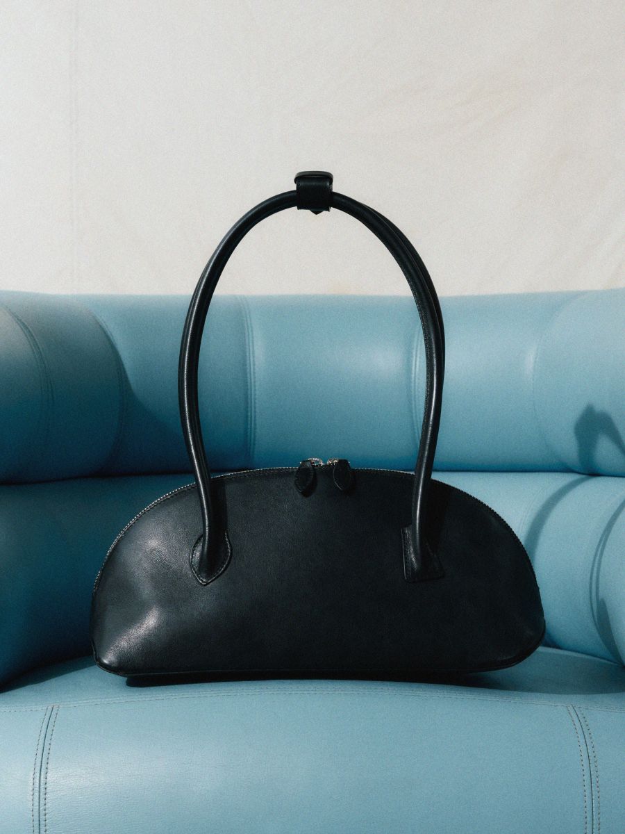 Black top handle leather bag, €675; www.liffner.co.